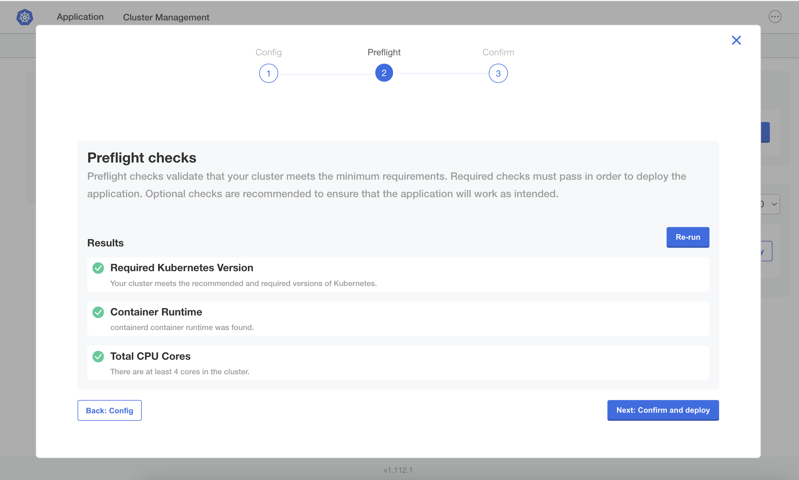 Do not downgrade the Embedded Cluster version, downgrade the Kubernetes version, nor upgrade Kubernetes by more than one minor version at a time. These actions are not prevented by the Admin Console and can lead to unexpected behavior. For more information, see Limitations in Embedded Cluster Overview.
